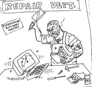 I kept making the 40-mile round-trip to Comp USA to keep bringing the computer back, but Comp USA kept failing to properly install the hard drive, denying me access to and use of most of the 15.1 gigabytes. Sick and tired of tearing my work station apart in vain, I turned my attention to putting my columns on the Web---as attested to by Columns 41, 42, 43, 44 and 45, the January, February, March, April and May issues now on the Internet.