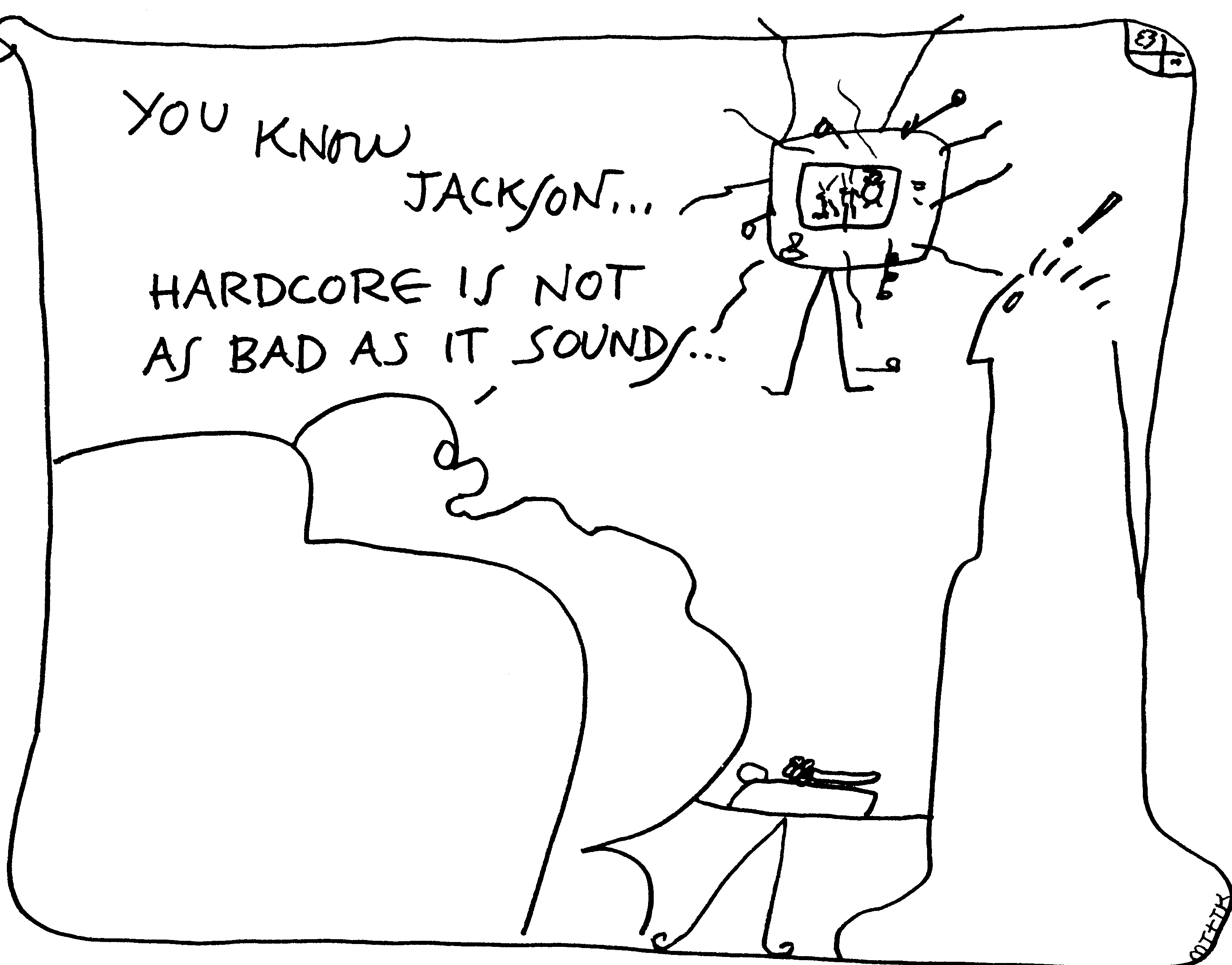 [Tuli has just published a book of "cartoons and collages" called TEACH YOURSELF FUCKING, with contents he describes as "political, social, cultural, artistic and idiosyncratic." The book is published by AUTONOMEDIA, P.O.B. 568, Brooklyn, NY 11211-0568. Email: infot@autonomedia..org. Website: www.autonomedia.org. The following cartoon is not included in the book.]