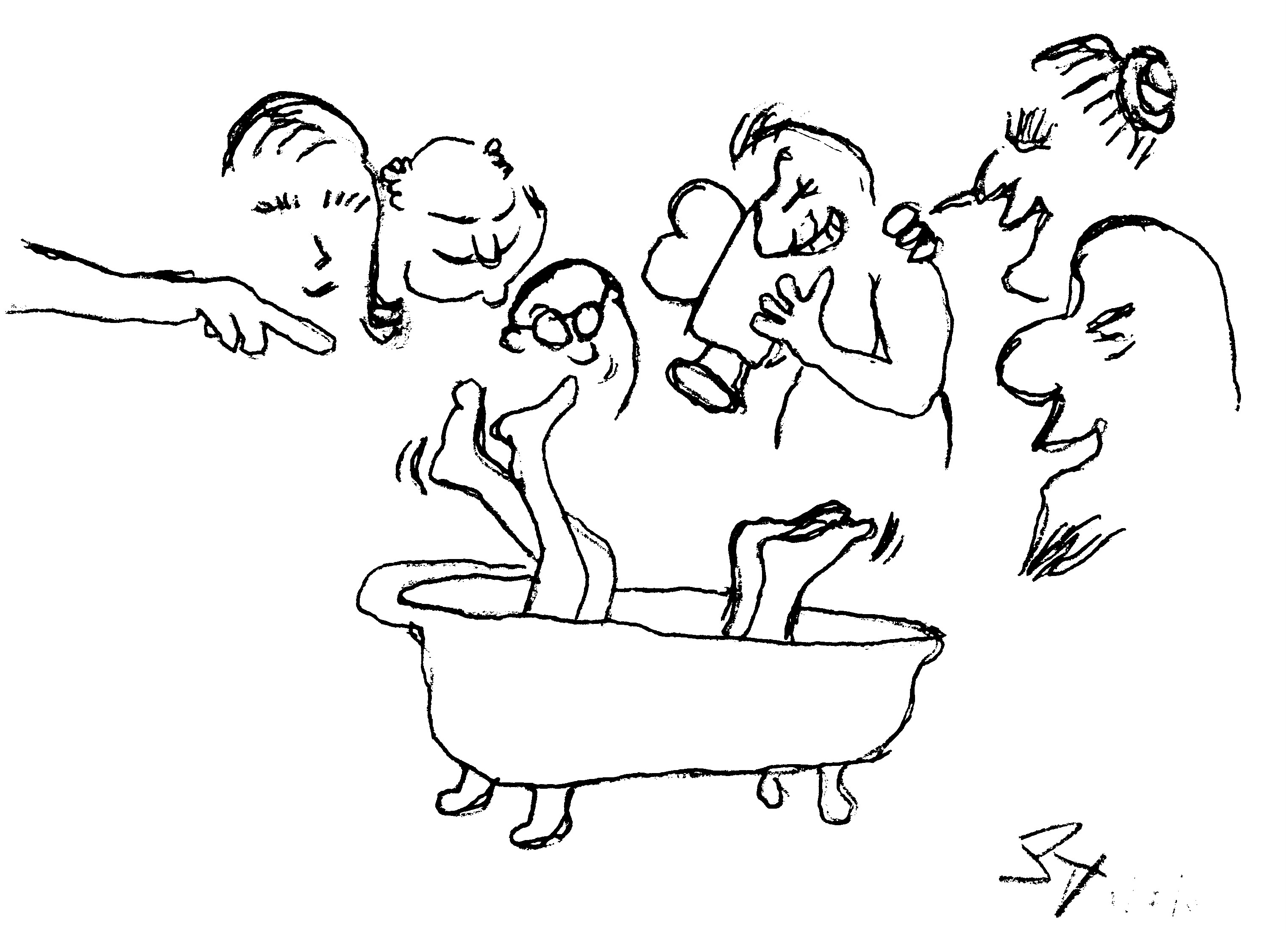 This tale concerns a tiny bathtub in his home. This very famous movie director wasn't there at the time but his then-wife was. As I've indicated, I don't mean to inflict my own or anyone else's bad or bawdy taste on you, but this director more recently has been accused of indulging in a bit of bad or bawdy taste himself. My rationale for unearthing this dirt is to preserve for historians of American mores some of the bawdy behavior that passed for recreation among some of the show business trend-setters of the pre-AIDS '60s. Besides, to insiders, this story is old news. The small army of people who were witness to what happened in that tiny bathtub have already told a small army of others, who have gotten as many chuckles from it as they have from the movies made by the movie director, who happens to be the author of some very hilarious flicks, none of them pornographic, by the way.