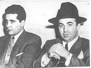 Johnny Stompanato sits at a behatted Mickey Cohen's right.